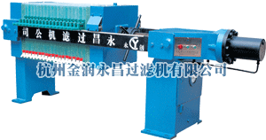 由丝母、丝杆和手动液压站组成。压紧滤板时,首先用手扳动丝杠手轮,使头板前进,待滤板初步压紧后改用液压顶紧,当压力达到20MPa时停止加压,并用紧固锁紧螺母(但一定注意,液压顶紧行程不得超过50mm,如行程已到50mm,但压力仍未达到20MPa时,可松开液压系统,重新扳紧丝杠后,再行加压)。反之则可松开滤板。